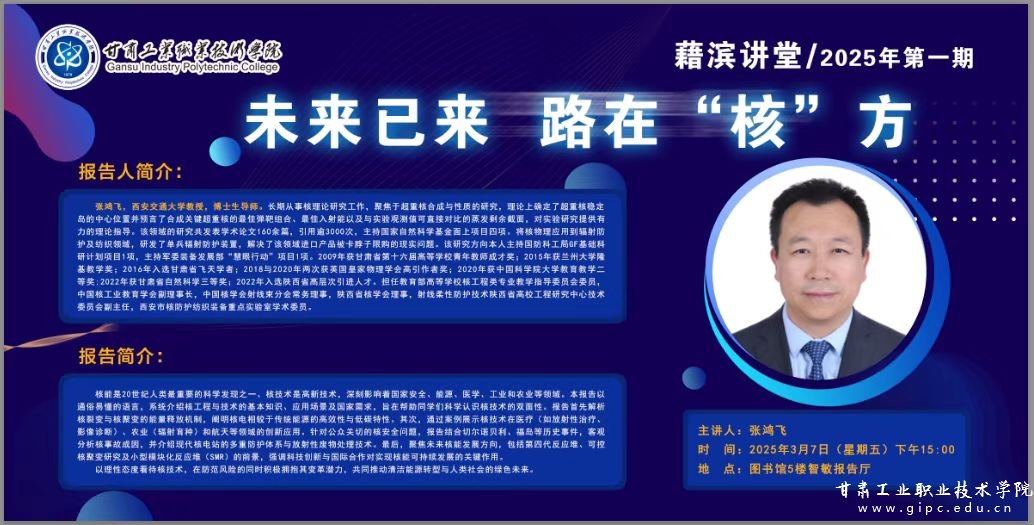 3月7日下午,2025年藉滨讲堂第一期在图书馆五楼智敏报告厅开讲。西安交通大学张鸿飞教授应邀作题为《未来已来,路在“核”方》的专题报告。公司党委委员、副经理周晓明主持报告会,核工程与技术公司、智能制造公司、电子信息公司、化工公司约400余名师生代表现场聆听。
