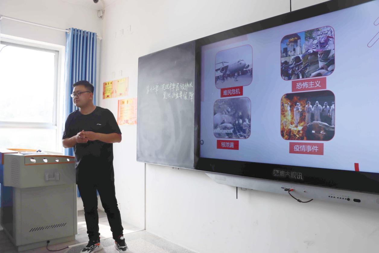 授课围绕教材第十二章第一节“坚持总体国家安全观”展开,听课过程中,安建平认真记录了教师的授课内容、教学方法和教学效果,细心观察同学们的精神面貌和学习状态。