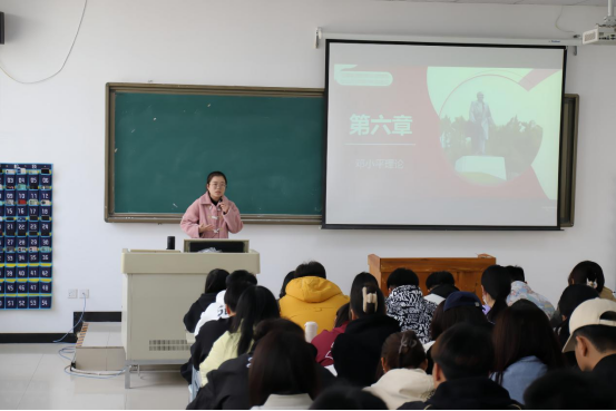 课堂中,授课教师左昭玉以“邓小平理论”为主题,围绕“邓小平理论首要的基本的理论问题”和“邓小平理论的精髓”两个方面,重点讲授了“社会主义的本质”及“解放思想、实事求是”等内容,课堂讲授内容充实,条理清晰。