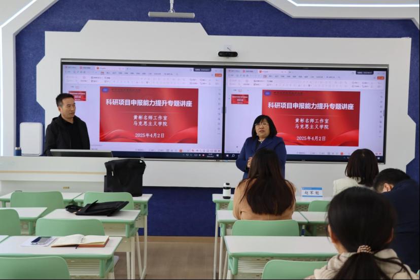报告会上,赵军魁教授系统阐述了社科项目申报的两个关键维度。首先,他深入剖析了项目申报的核心要点,包括:项目评审的运作机制、选题策略的制定方法以及论证逻辑的构建技巧,着重强调了科研选题在学术研究中的重要地位,并详细解读了选题的基本原则和多维视角。其次,赵军魁教授通过对历年成功立项案例的实证分析,总结归纳出具有借鉴价值的申报经验与规律性认识,为与会教师提供了切实可行的申报参考路径。